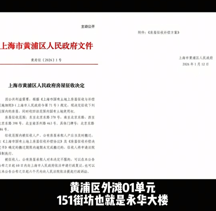 2026年上海开年就放大招!黄浦区正式启动北京东路151街坊永华大楼的征收工作,作为外滩01单元城市更新的关键一步,这次征收不仅让20余证居民盼来了旧改福利,更意味着一座200米高的超高层住宅将在苏州河畔崛起,直接刷新浦西住宅天际线,魔都核心区要迎来“空中豪宅”新时代!