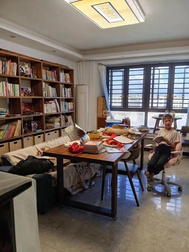 不过相较于居家办公,注重学习氛围的家庭,其实更适合将大长桌放客厅里。一来方便大人观看孩子,二来方便从小培养孩子的专注力和自主学习的习惯。