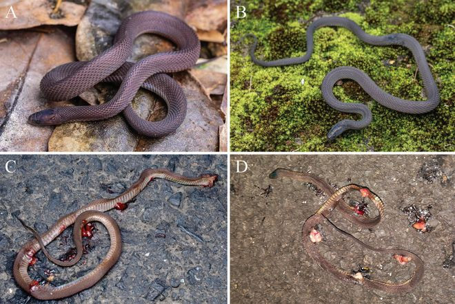 这条蛇体型纤细,长度20~30厘米,通身呈褐至深褐色,与常见物种有着互异,凭借专科锤真金不怕火,世东说念主坐窝察觉到了它的特殊性。同为爱好者的胡家豪但愿能尽我方的一份力,在括苍山找到更多该物种的完满样本。