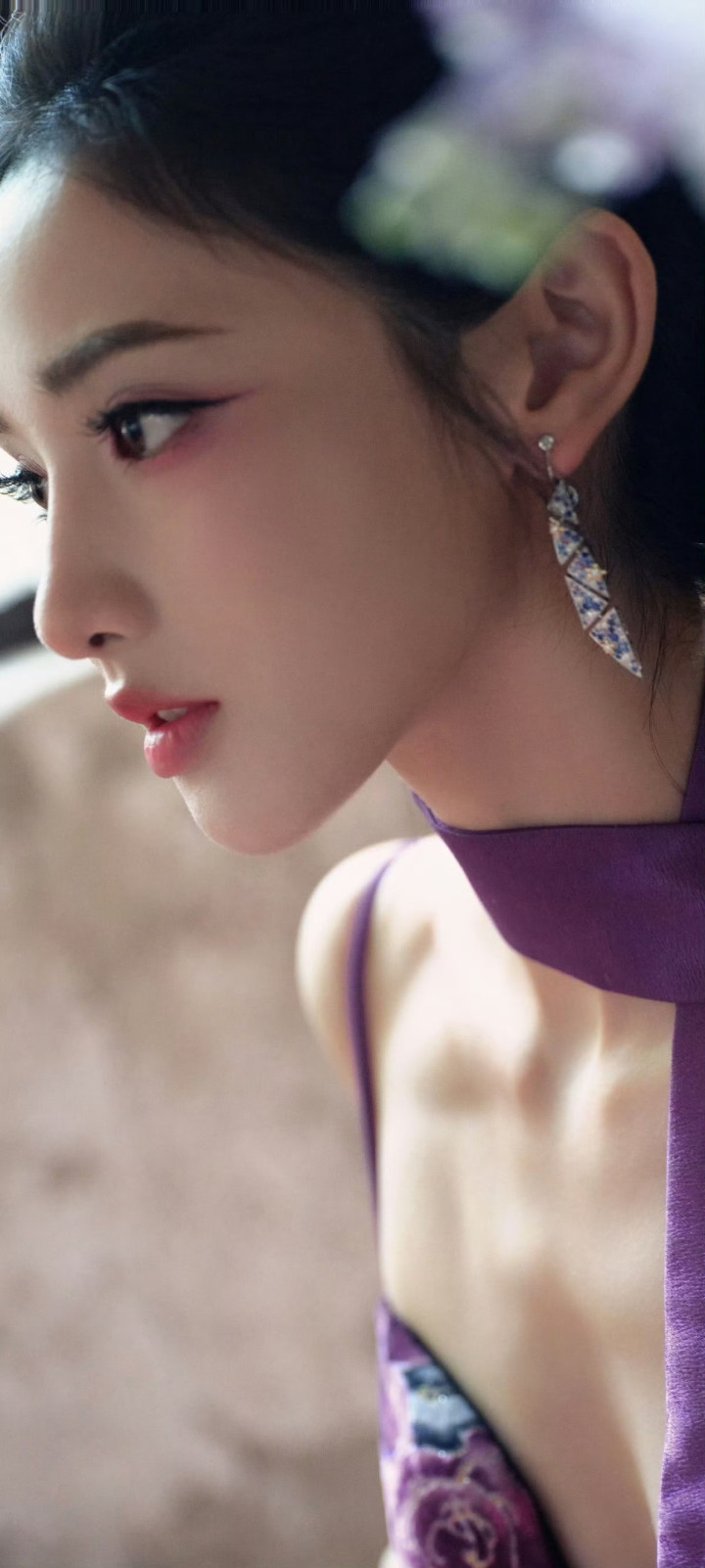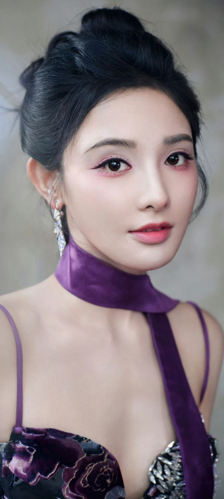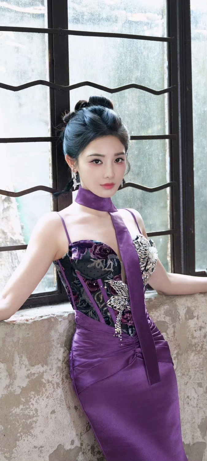 米兰体育官方网站 彭小苒紫色旗袍韵味王人备