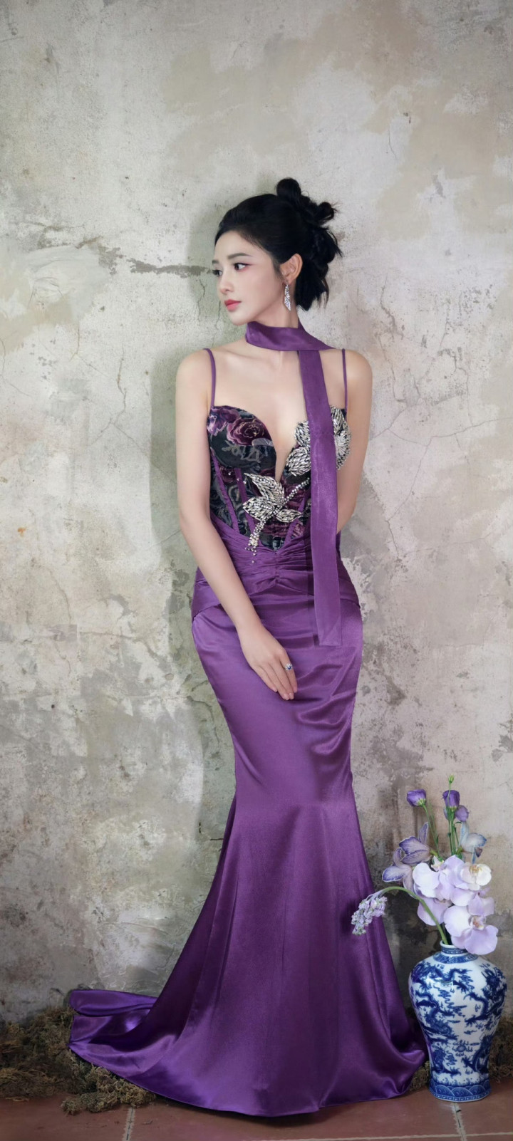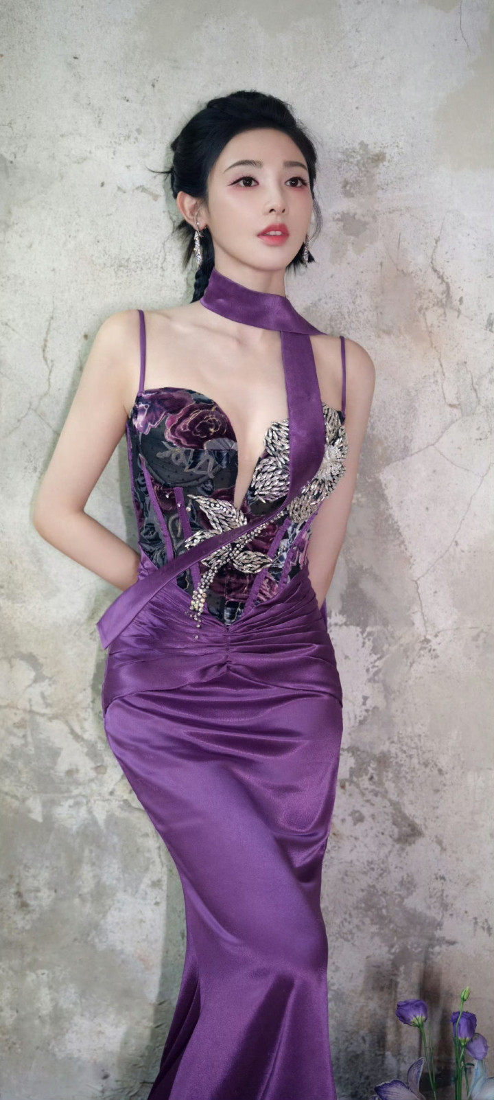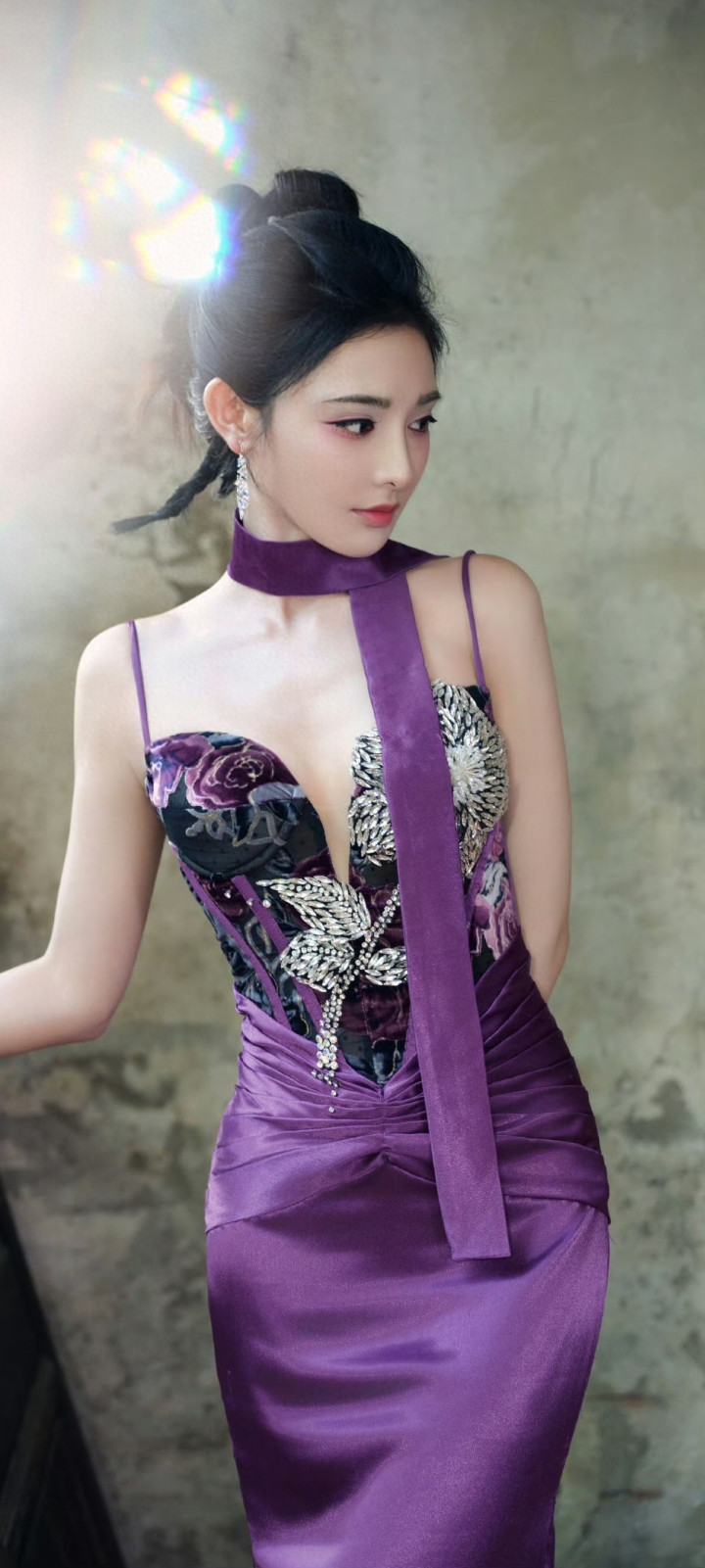 米兰体育官方网站 彭小苒紫色旗袍韵味王人备