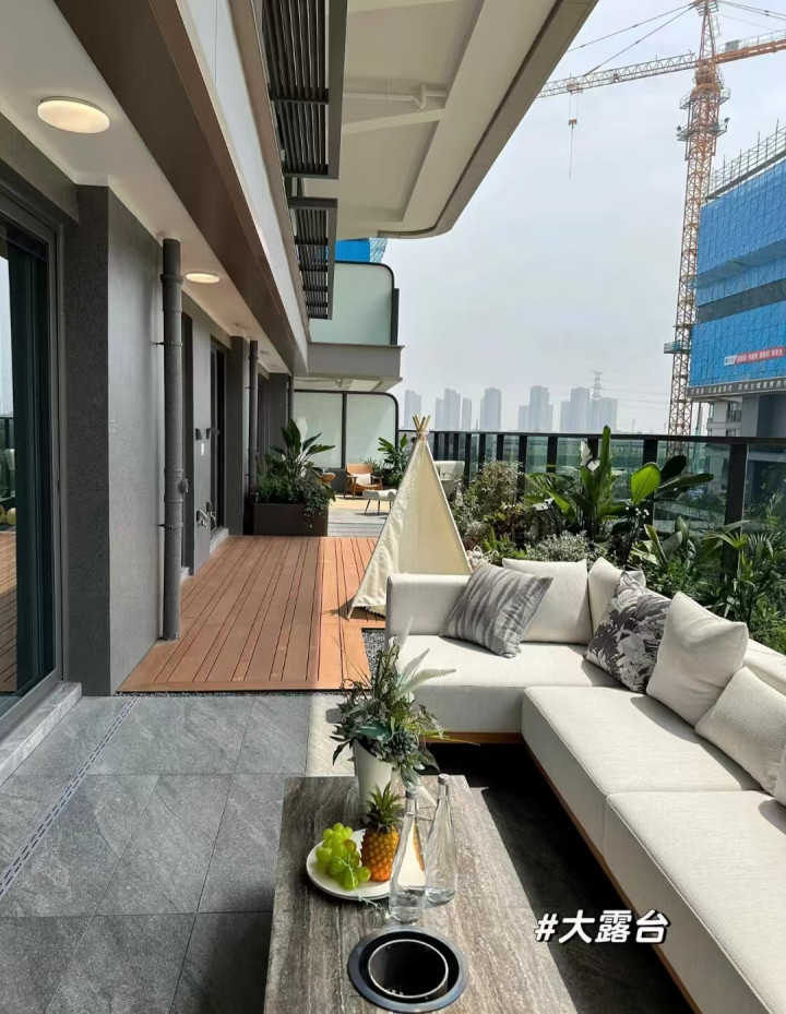 网友@一朵花说,不能封阳台的房子真的不能买啊,我当初就是冲动了买了这套第四代住宅,阳台这么大就完全是一个室外空间。