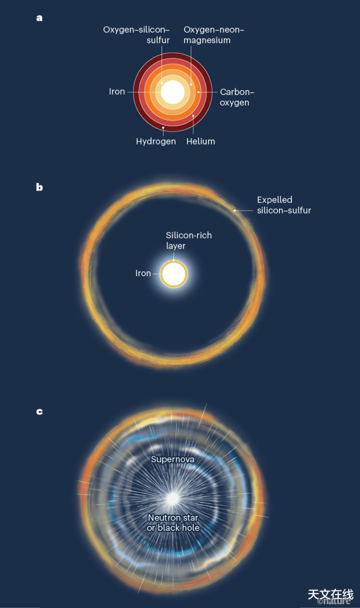 这张艺术家暗示图展示了一颗红超巨星爆发为超新星的进程。II型超新星发祥于大质地恒星,这类恒星在人命末期会演化为红超巨星。最新商议聚焦于这些恒星的里面结构,以及为何它们的光变弧线互相各异显赫。图片开端:ESOL.Calçada