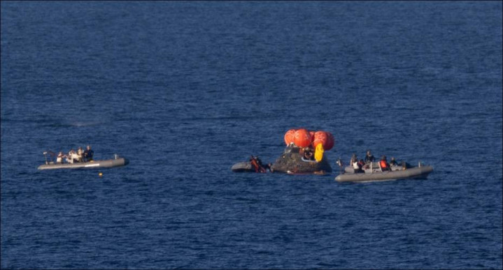 北京时候8点07分,猎户座复返舱按照预定缱绻溅落在加利福尼亚州圣迭戈隔邻的太平洋海域,好意思国舟师的回收力量立地开展现场不休就业。