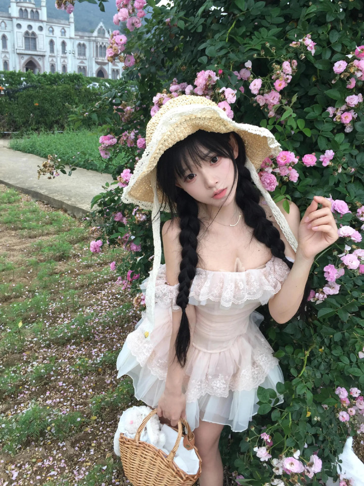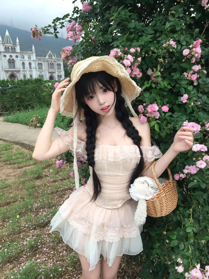 米兰体育官方网站 白色蕾丝蓬蓬裙 仙女感 甜妹 白裙子 花与仙女