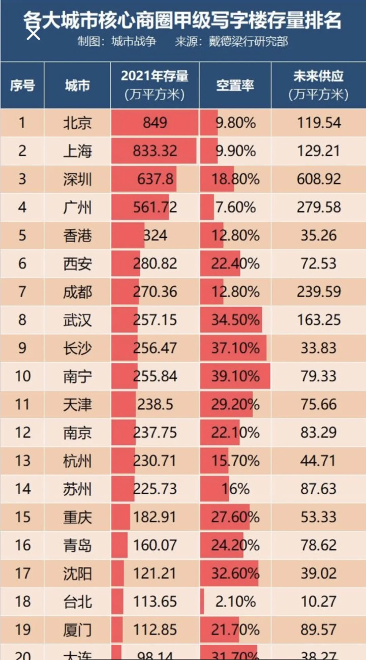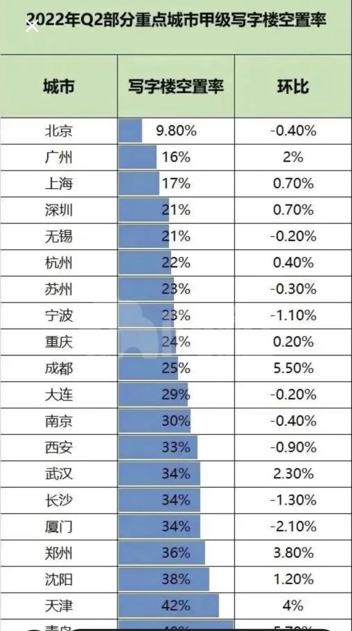 在北京、上海等一线城市,写字楼空置率普遍在15%–19%,